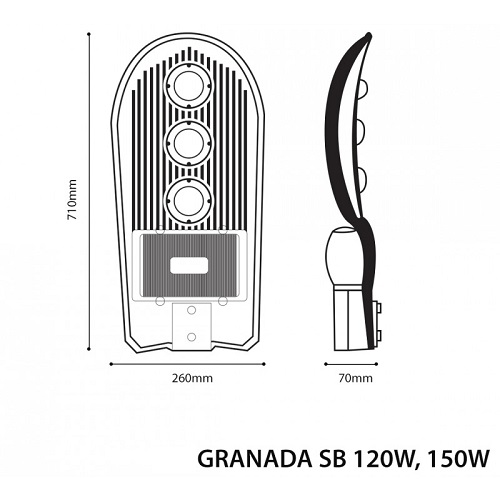 | 90750 | LED УЛ. ОСВ. GRANADA SB | 230V | 120W | 4000K | 16800lm | 140°/60° | 60000h | IK10 | IP66 | 710x260x70 | Ra≥80 | 135.19 лв | 69.12 € |